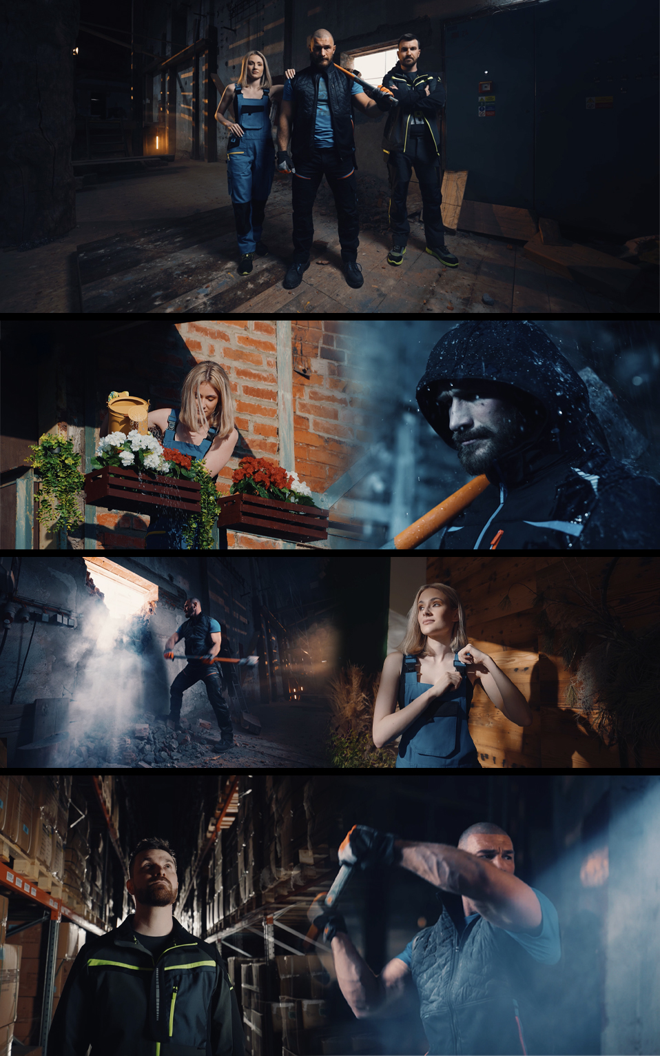 Pro reklamu na pracovní oděvy jsme natáčeli na čtyřech různých lokacích a natáčení zabralo 3 produkční dny. Úkolem bylo ukázat jak detaily oblečení, tak i jejich funkčnost v praxi. Svícení nám zajistili kluci z Diffview, kteří se postarali o profesionální nasvícení každé scény a vytvoření konkrétní atmosféry.